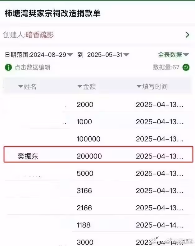去年9月,樊振東就曾向祁東捐款30萬,專門用於支持當地體育事業發展。今年4月,他又向祁東的樊氏宗祠捐款20萬,用於宗祠改造。