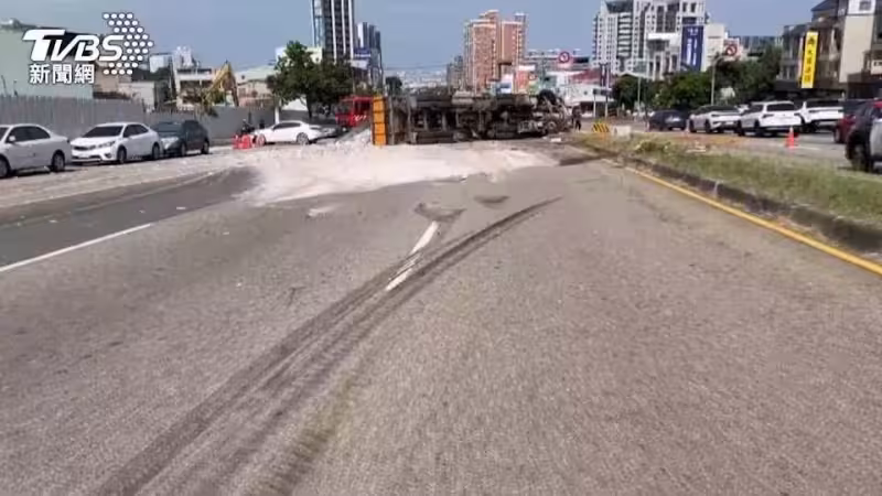 砂石車剎車失靈?「自撞翻覆」避重大事故。
