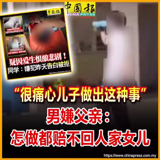 「男中學生刺死學姐」案;14歲男嫌犯父親哽咽受訪時稱,他的兒子性格內向,平時不怎麼說話,他完全不敢相信兒子會做出這種事,並指自己的道歉已不足夠。」