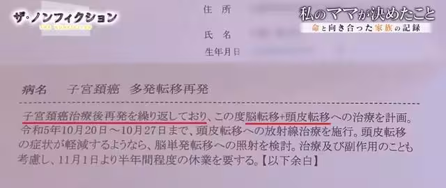 然而,2020年12月,噩夢突然降臨!真由美患上極罕見的子宮頸癌,即便積極治療,但癌細胞擴散速度很快。