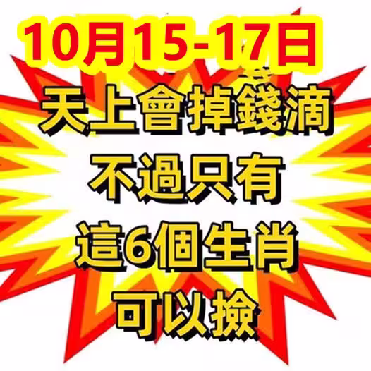 10月15 到 17日天上會掉錢滴 ,不過只有這6個生肖可以撿
