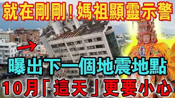 就在剛剛!媽祖顯靈發出緊急警告,下一個「大地震地點」!10月「這天」更要小心!