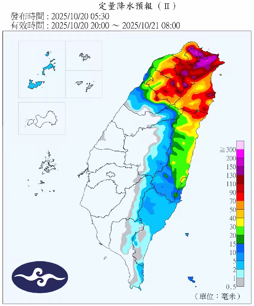 專家提醒,直到周六之前,低壓帶配合東北季風的影響下,水汽仍會維持偏多狀態,特別是桃竹以北及東半部地區,都有可能出現豪雨等級以上的降雨。氣象專家特別提醒,即將舉行的台灣大賽G3、G4場次可能受到降雨影響。