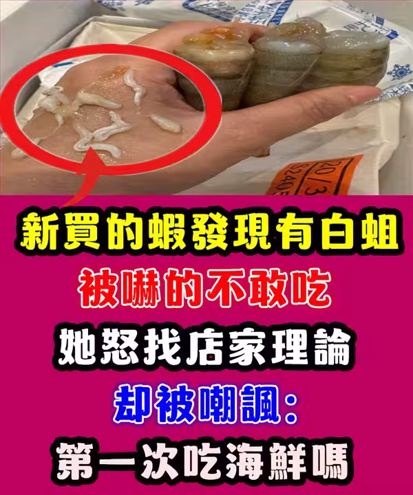 新買的蝦發現有「白蛆」,被嚇的不敢吃,她怒找店家理論卻被嘲:第一次吃海鮮嗎