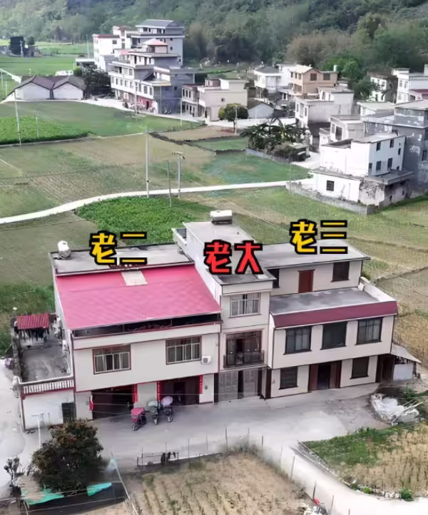 三棟房子緊挨在一起,大哥的房子在中間,老二、老三的房子在兩邊。