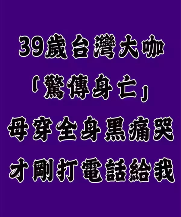 39歲台灣大咖傍晚「驚傳身亡」母穿全身黑痛哭:「才剛打電話給我.....」
