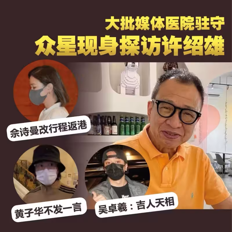 許紹雄病危消息震驚娛圈,不少圈中好友周一陸續到醫院見面,稍早在澳門出席活動的佘詩也更改行程趕返香港到醫院探望。