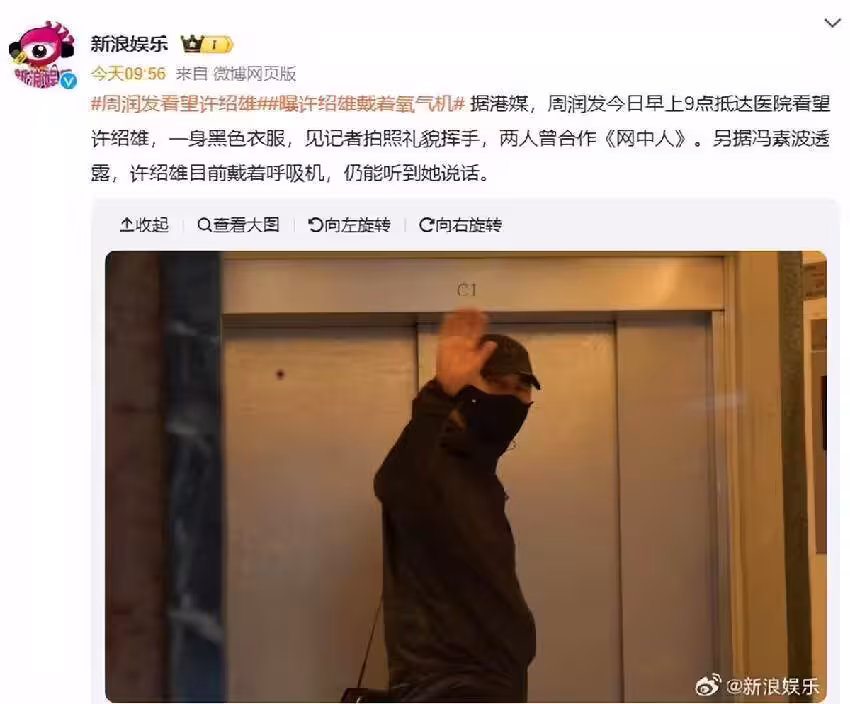 可以看到發哥穿著一身黑色十分的低調,還戴著黑色的口罩,神情嚴肅看上去心事重重,儘管他把自己捂得嚴實,但依舊被認了出來,於是他就伸出手打招呼,盡力的平復憂傷的情緒。