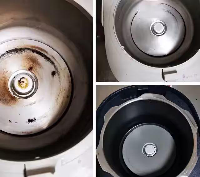 【千萬記住】:絕對不能用鋼絲球或者任何硬物去刮,一旦刮傷了表面的塗層,這個電飯鍋的導熱效率就永久性下降了,神仙也救不回來!