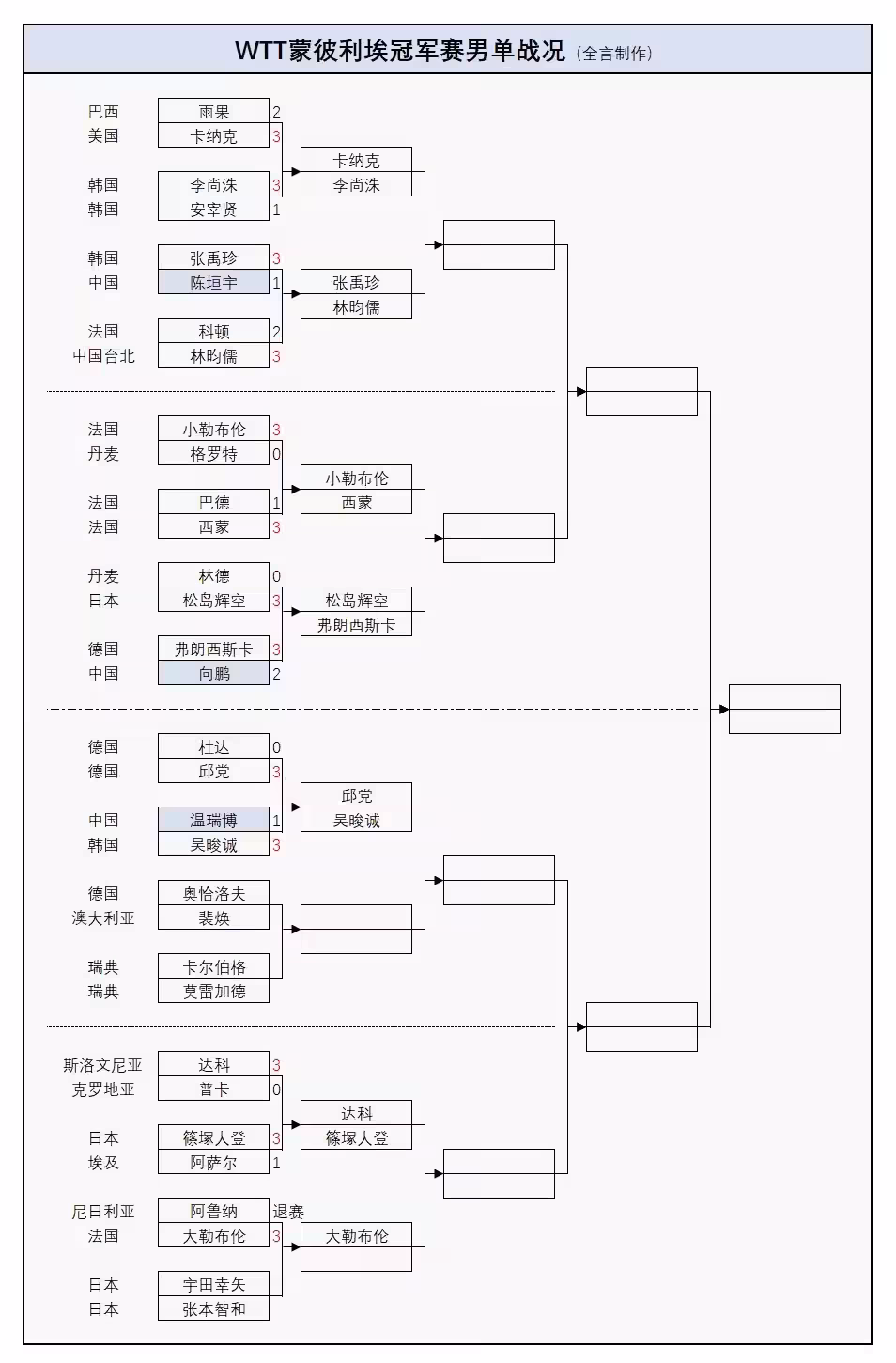 WTT冠軍賽:男單13人晉級16強!國乒3連敗全軍覆沒,雨果爆冷一輪游