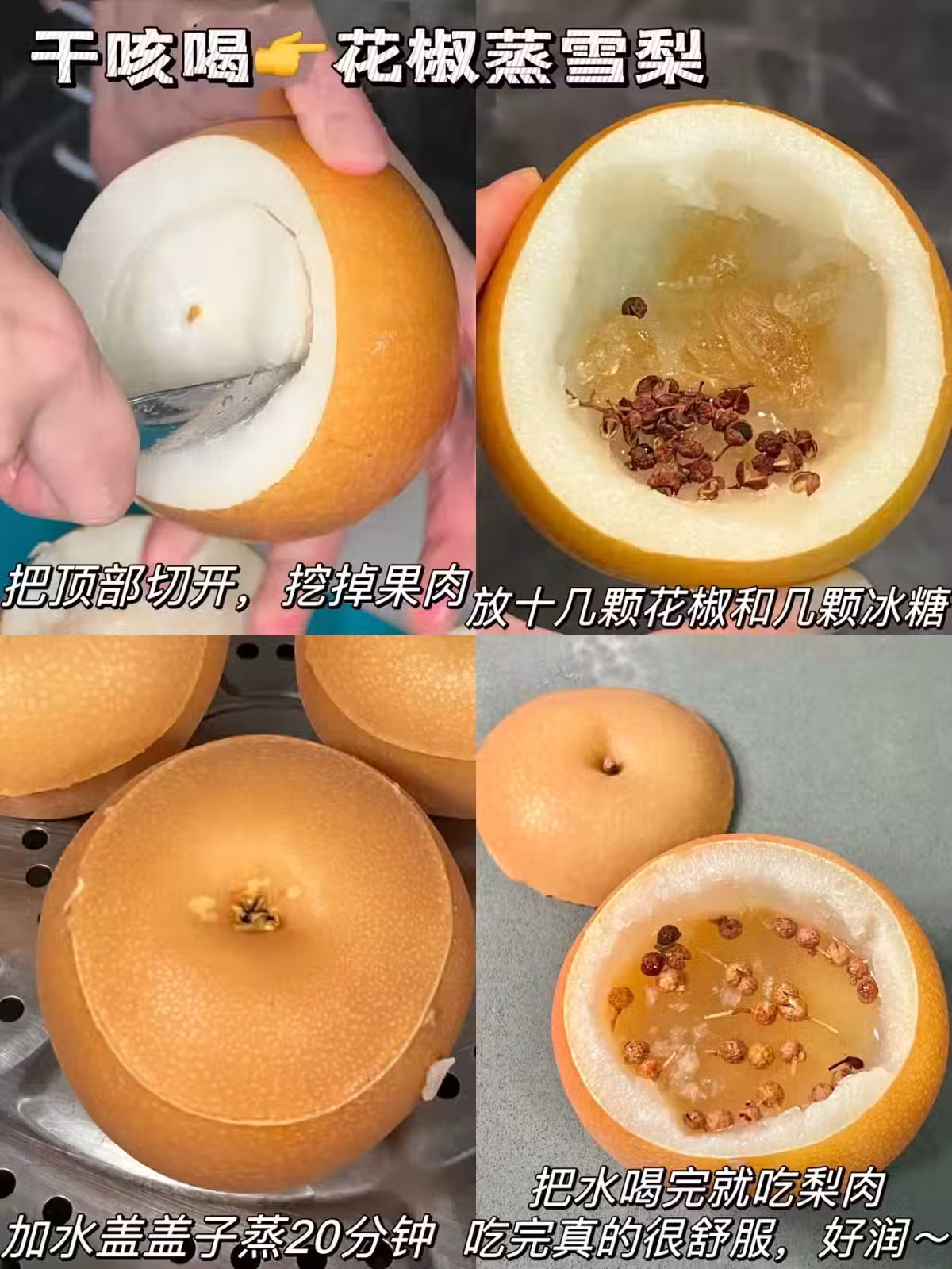 乾咳、喉嚨吞刀片的👉花椒蒸雪梨