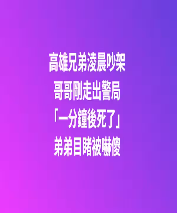 高雄兄弟凌晨吵架!!哥哥剛走出警局「一分鐘後死了」弟弟目睹嚇傻