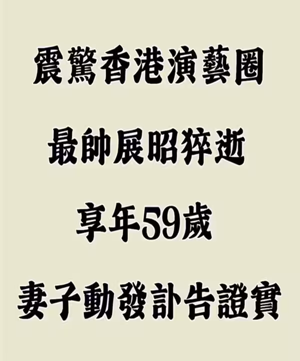 59歲「最帥展昭」甄志強驚傳過世 (10/31)其妻方心媛透過社群發訃聞證實,震驚香港演藝圈。