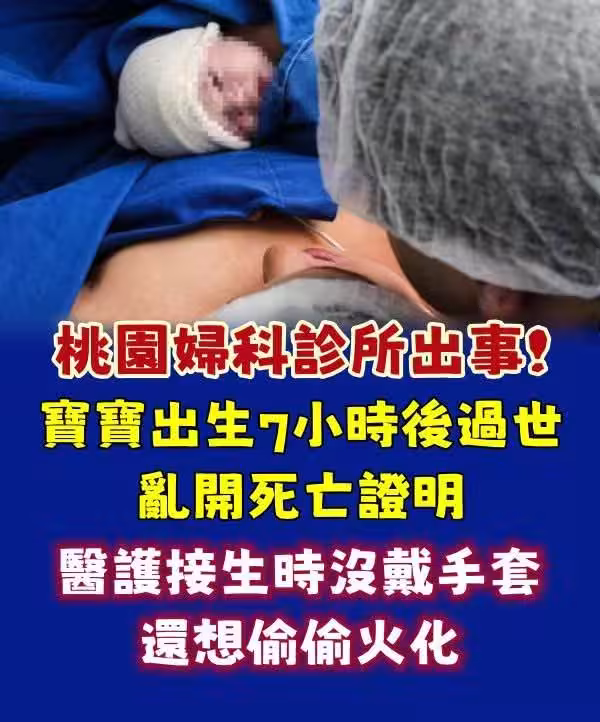 桃園婦科診所出事!寶寶出生「7小時後過世」亂開死亡證明 醫護「接生時沒戴手套」還想偷偷火化。