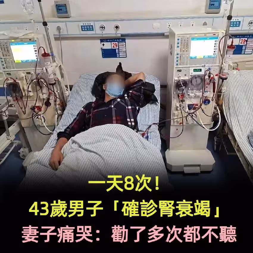 一天要8次!!! 43歲男子「確診腎衰竭」 妻子痛哭: 勸了多次從來都不聽