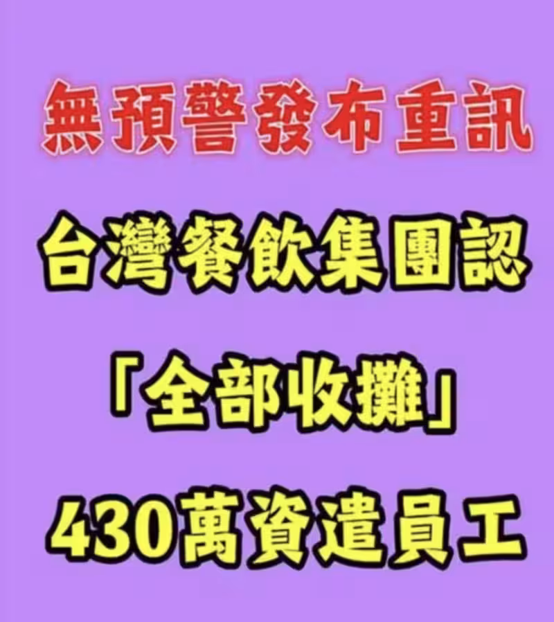 台灣餐飲集團重訊認了「全面收攤」!!員工資遣費達430萬,下一步曝光