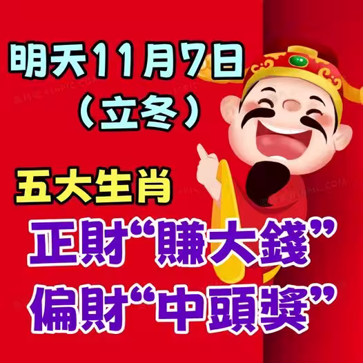 明天11月7日(立冬)五大生肖正財「賺大錢」偏財「中頭獎」