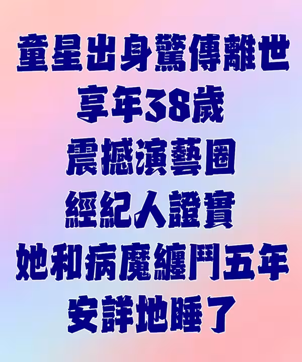 童星出身!38歲星二代「驚傳離世」震撼演藝圈 經紀人證實「她和病魔纏鬥五年」:安詳地睡