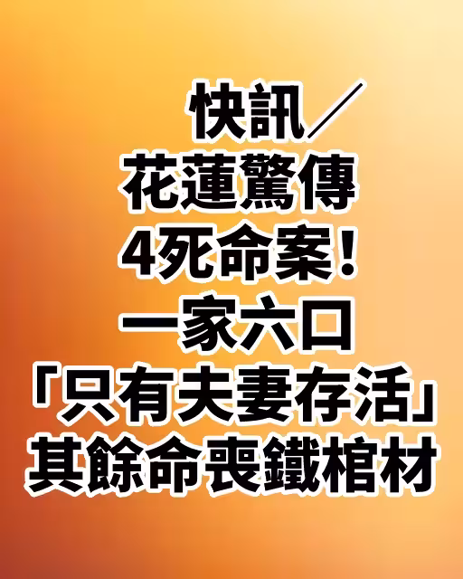 快訊/花蓮驚傳4死命案!一家六口「只有夫妻存活」其餘命喪鐵棺材.