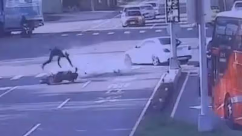 苗栗紅牌重機「高速闖紅燈」猛撞奔馳車!22歲騎士噴飛10米重傷