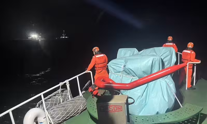 淡水海巡隊2艘巡防艇入夜持續在現場戒護潛水員作業,大約晚間9點半找到船長遺體,帶返台北港海巡基地經家屬指認無誤,另2名漁工仍下落不明,今天上午淡水海巡隊10088巡防艇仍在現場持續搜索中。