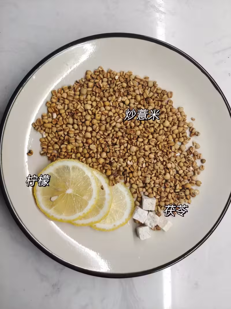 做法:薏米+茯苓用95度以上開水燜泡20-30分鐘,水溫下降後放入檸檬片!