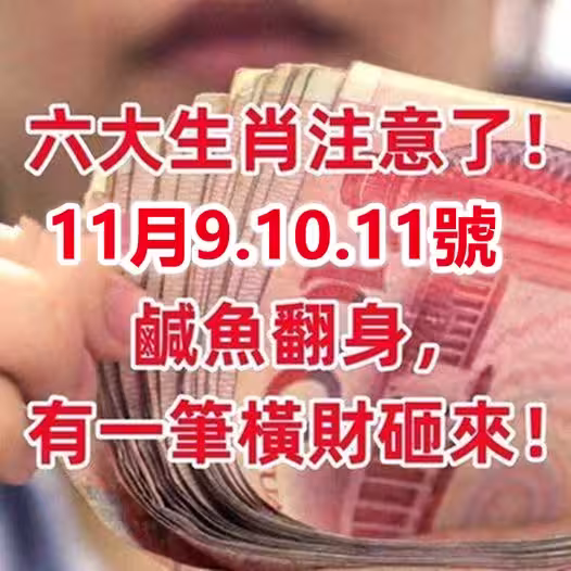 六大生肖注意了!11月9.10.11號鹹魚翻身,有一筆橫財砸來!