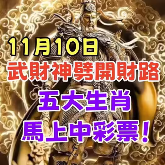 11月10日,武財神劈開財路,五大生肖馬上中彩票