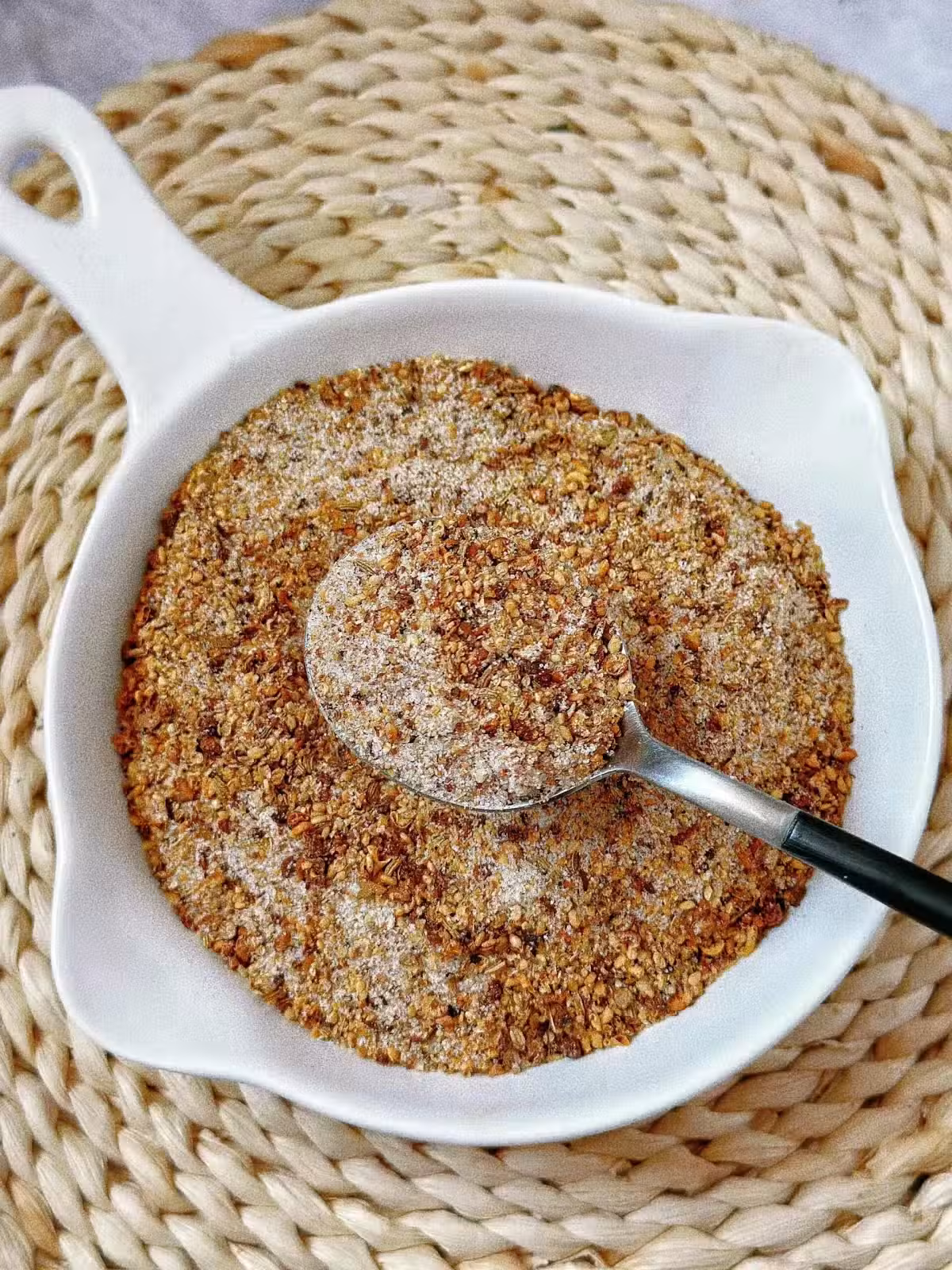 1️⃣花椒放入炒鍋小火炒3分鐘,放入小茴香和白芝麻繼續煸炒至散發出濃郁的香味盛出放涼。放入料理機打成粗粗的顆粒即可。