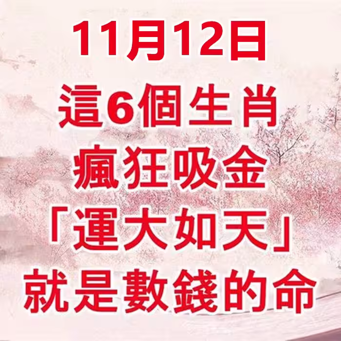 恭喜了7大生肖,在未來三天( 11月20~23日)即將有一筆橫財,準備好收錢吧