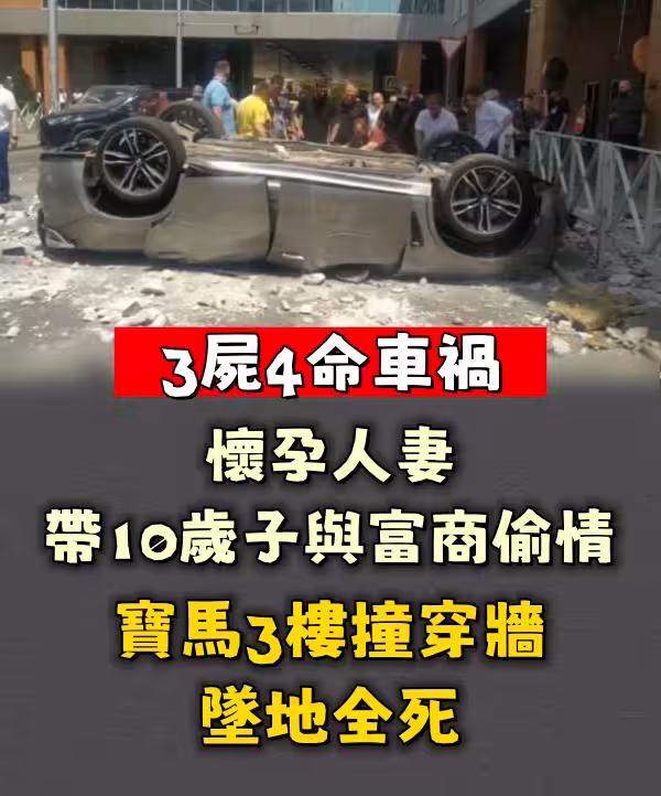 3屍4命車禍│懷孕人妻帶10歲子與富商偷情 寶馬3樓撞穿牆墜地全死