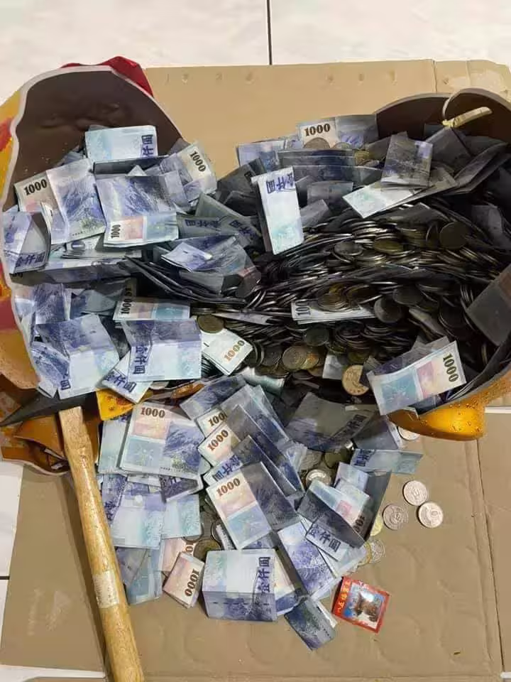 存了一整年!他年末打破豬公看到「一片藍藍紙鈔海」~算出總額後嚇爛:太扯了!
