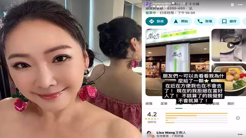 知名女星王俐人昨(19日)發布了一則針對某家位於延吉街附近的養生火鍋店的一星評論,引發軒然大波。她詳細敘述了自己因為欲將自助吧多拿的一顆雞蛋帶走,與店家員工和主管發生激烈衝突的經過。然而,這篇充滿個人情緒的負評,非但未能成功達到「公審」店家目的,反而因其行為被質疑是奧客、評論內容充斥大量錯字,在網絡上引發熱議,多數網友幾乎一面倒地批評王俐人的行為。