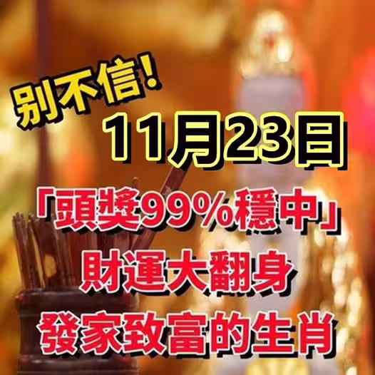 11月23日「頭獎99%穩中」財運大翻身 ,發家致富的生肖!
