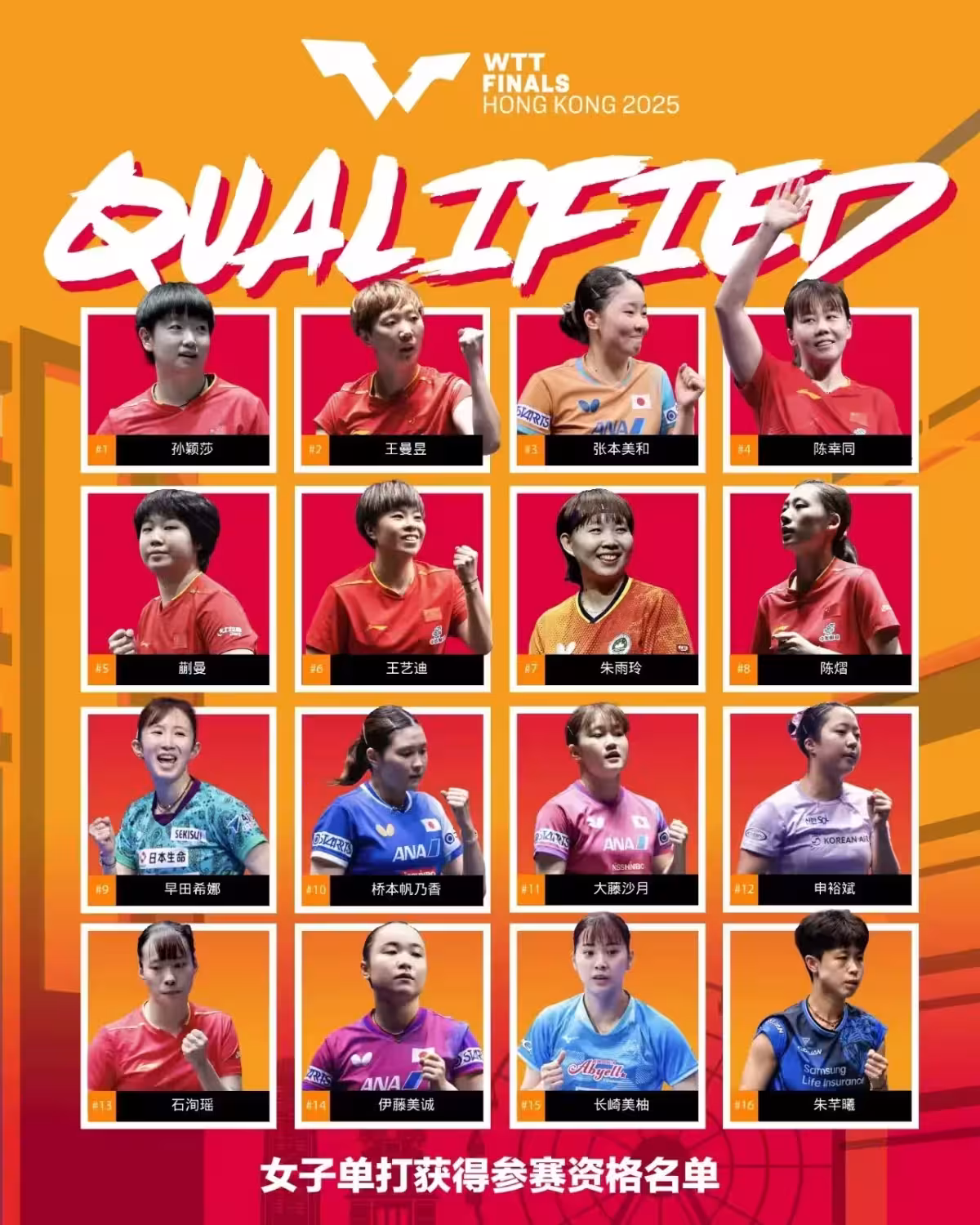 在此次年度總決賽,孫穎莎與王曼昱分別擔任賽事一、二號種子,鎮守上下半區,國乒女隊雖占據人數優勢,面臨的競爭壓力卻不小。本次女單16強席位被東亞選手包攬,日乒女隊成為國乒女隊最主要的競爭對手,張本美和、早田希娜、橋本帆乃香、大藤沙月、伊藤美誠、長崎美柚六人入圍,其中張本美和以3號種子成為國乒女單奪冠路上的最大勁敵,其快速多變且力道十足的前三板打法已展現出極強的競爭力。