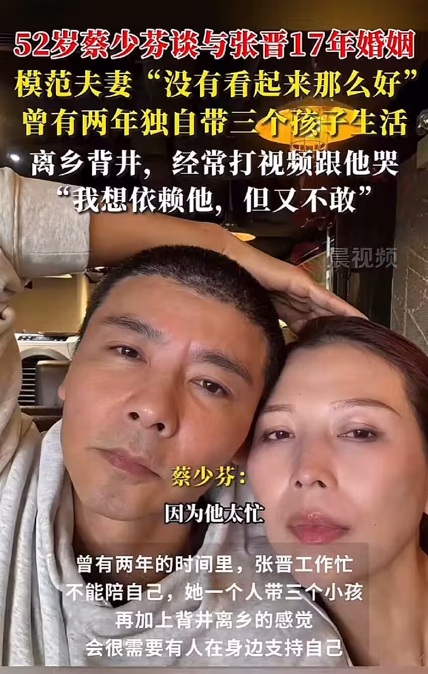 那段時間蔡少芬經常深夜和張晉打電話痛哭,連依賴丈夫一下都做不到。