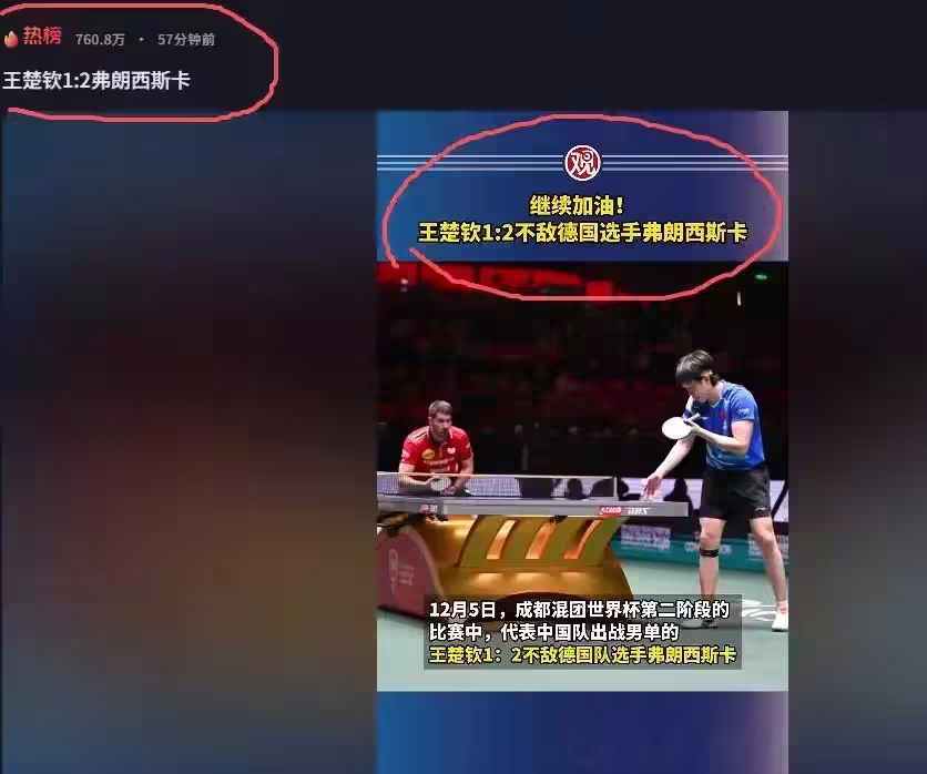 所有人的目光,有意無意地聚焦在王楚欽身上。在與德國選手弗朗西斯卡的男單較量中,他意外地丟掉了兩局。對於這位對自己要求嚴苛到極致的頂尖運動員來說,在團隊賽中失分,尤其是領先後的失誤,是一種難以釋懷的煎熬。熟悉他的人都知道,這種自責會如何吞噬他——他曾因一場重要的單打失利,在更衣室里待了「好久好久」,只因「不能原諒自己」。