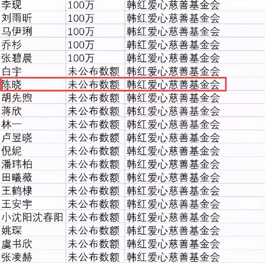 當韓紅基金會公布文藝工作者捐款名單時,「陳曉」兩個字讓不少人意外。