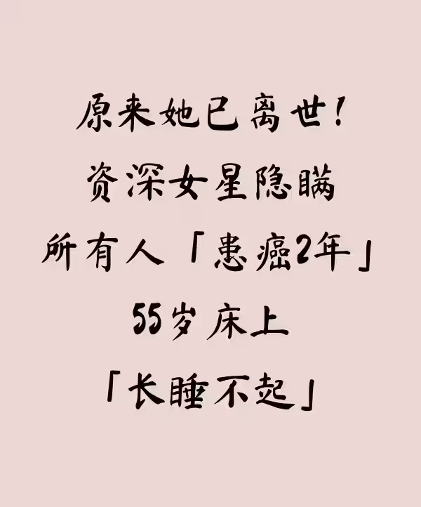 原來她已離世!!! 欺騙所有人患癌2年,55歲床上「長睡不起」