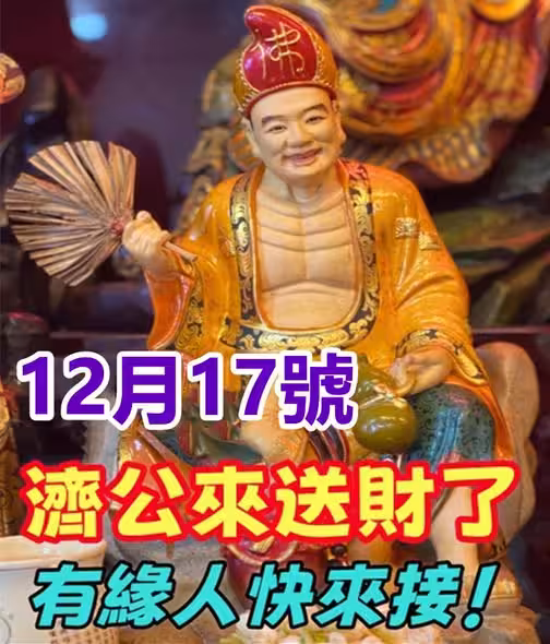 12月17號,這一天特別適合有緣之人把握機緣,因為濟公佛祖來送財了!這位佛教傳說中的濟公,素以慈悲為懷,喜歡幫助有緣人脫離困境,帶來好運與福氣。 因此,如果你感覺自己與濟公有緣,那麼這一天就是屬於你的幸運日。 在民間傳說中,濟公經常以幽默、隨性且神通廣大的形象出現,幫助那些在困境中的人們走出難關,迎來轉機。 12月17號,濟公會以各種方式來到有緣人的身邊,為他們帶來好運與財運。 這不僅僅是物質上的財富,更是精神上的啟迪與指引。