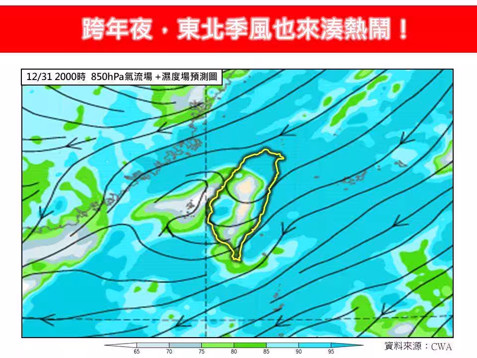 跨年、元旦冷 東北季風殺來不只下雨還冷!林得恩分析,受東北季風增強影響,北部、東北部地區白天高溫略為下降,台灣各地早晚氣溫仍涼;跨年夜、元旦這段期間,北部及東北部屬於濕涼天氣,其它地區多雲到晴天氣,早晚溫差較大。