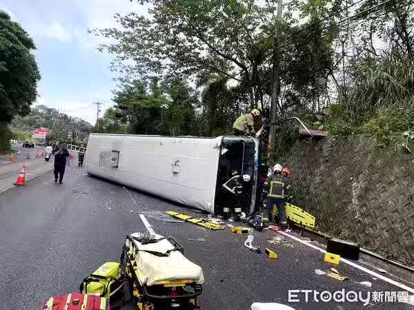 快訊/新竹綠世界前「驚傳遊覽車翻覆」 死傷人數曝光!