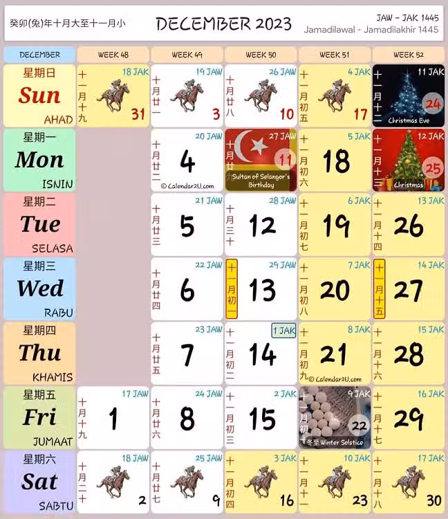25 Dec : Isnin : Hari Krismas : Semua Negeri