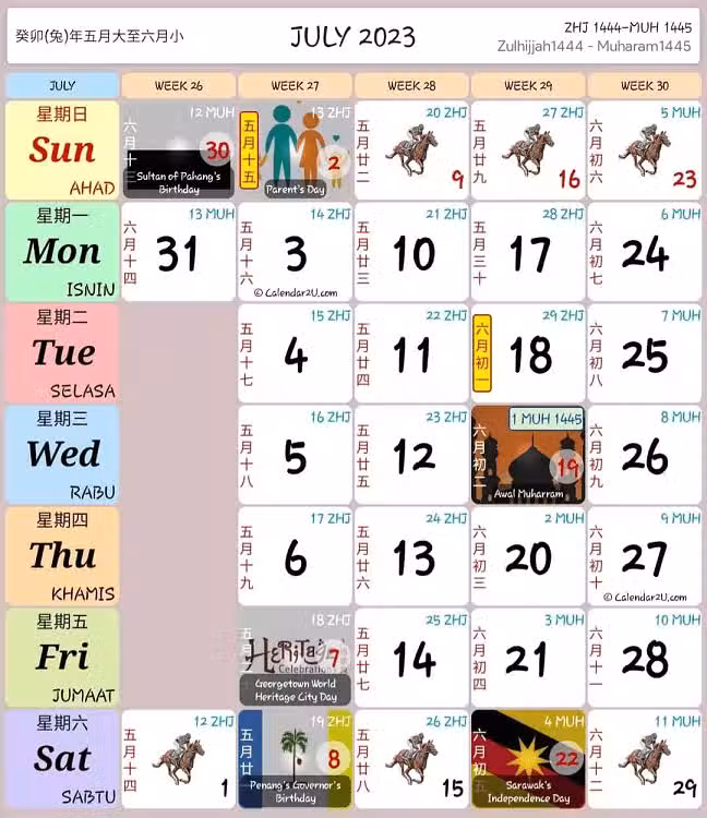 19 Jul : Rabu : Awal Muharram (Maal Hijrah) : Semua Negeri.