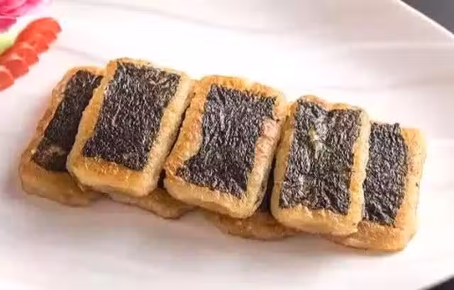 3. 煎盤燒熱,下少許油,放入海苔餅慢火煎至兩面金黃出鍋,擺盤即可。