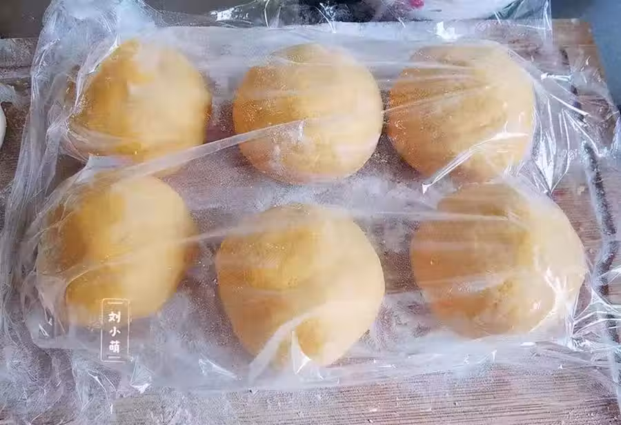 7、 取一份黃色麵團,擀成厚且稍小一點的片,放在白色麵團上。刷一層油酥,撒少許芝麻。然後重複這樣的操作,依次放白色面片、黃色面片。