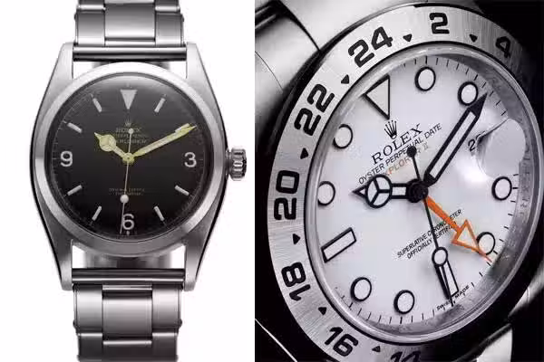 探險家型(Explorer):說到這個型號就不得不說勞力士的實驗精神了,勞可以說是一個喜歡將世界作為實驗室的腕錶,英吉利海峽橫渡、火箭級別發動機的飛行器上天、珠峰登頂、馬里亞納海溝深潛都有勞力士的身影。這隻腕錶誕生於1953年,登頂珠峰後推出的新型號。1971年第二代探險家型推出,加入了新的指針及24小時表圈區分晝夜,至今幾經改款,仍維持著當年的風格。