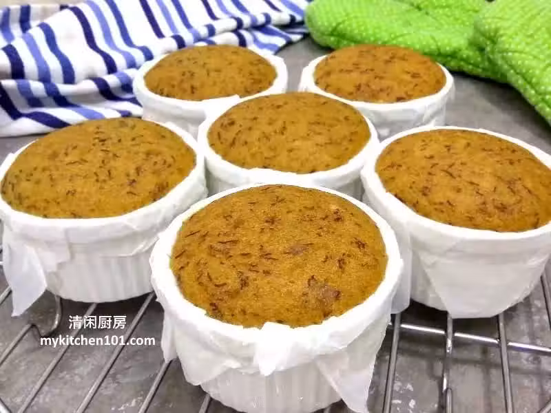 如果不做杯子蛋糕,可以用6吋方形烤盤做一個小蛋糕,蒸煮時間改為大火蒸45分鐘 (前30分鐘不要打開蒸爐,不然蛋糕可能會坍塌)。