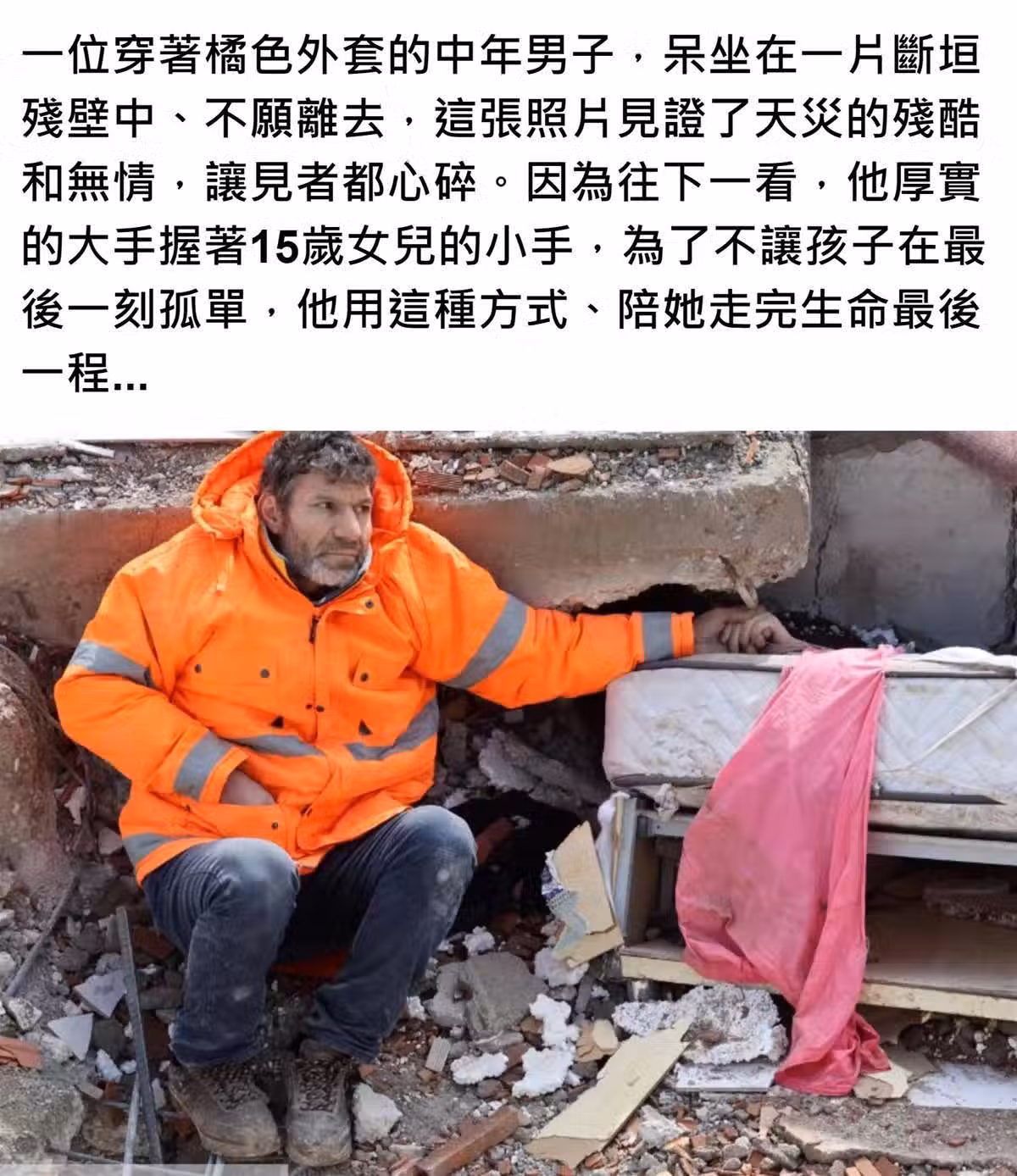 土耳其強震!父心碎呆坐瓦礫旁「緊握愛女小手」 直到她斷氣「仍不願離去」:爸爸還在呢