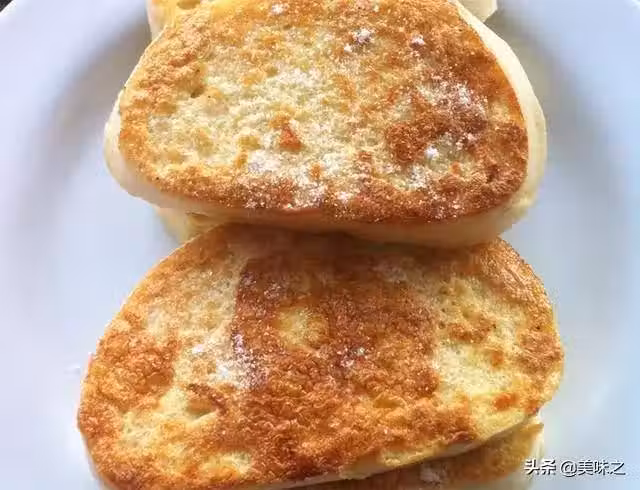 5、電餅鐺均勻抹一層油,放入饅頭片,煎至兩面金黃就可以了。